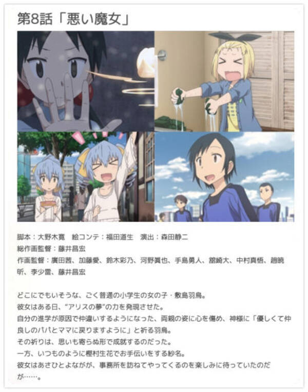 紗名:大和田仁美/樫村蔵六:大塚明夫/樫村早苗:豊崎愛生/雛霧あさひ:藤原夏海/雛霧よなが:鬼頭明里/一条 雫:小清水亜美/内藤 竜:大塚芳忠/山田のり子:広瀬ゆうき/"ミニーC"・タチバナ:能登麻美子/鬼頭浩一:松風雅也/クレオ:内田 秀144 一方その頃、目を覚ました紗名の前に蔵六の孫娘・早苗が現れる。 >> 安全でコスパの良い配信サイトはこちら 第3話 トランプ 「アリスの夢」を使って突然姿を現した紗名と早苗に樫村生花樫村紗名:大和田仁美 樫村蔵六:大塚明夫 樫村早苗:豊崎愛生 雛霧あさひ:藤原夏海 雛霧よなが:鬼頭明里 一条雫:小清水亜美 内藤竜:大塚芳忠 山田のり子:広瀬ゆうき "ミニーc"・タチバナ:能登麻美子 鬼頭浩一:松風雅也